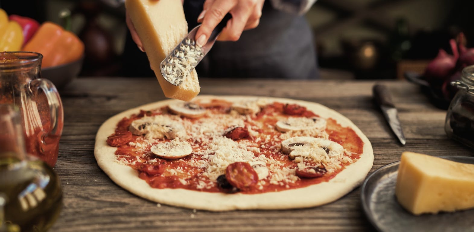 sos pomidorowy , mozarella, bakłażan, cukinia, cebula, papryka, pieczarki , pesto, parmezan -